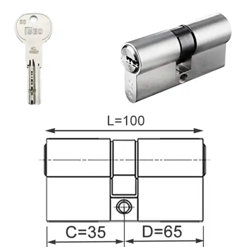 ISEO R700 wkładka bębenkowa dwustronna (klucz/klucz) 35x65, niklowana matowa