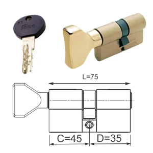 R7 EXTRA wkładka bębenkowa dwustronna z gałką (klucz/gałka) 45Gx35, mosiężna matowa