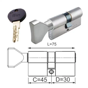 R7 EXTRA wkładka bębenkowa dwustronna z gałką (klucz/gałka) 45Gx30, niklowana matowa