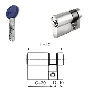 ISEO R700 wkładka bębenkowa dwustronna (klucz/klucz) 30x40, niklowana matowa