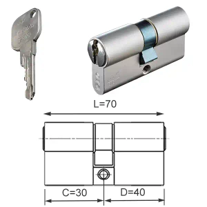 ( ilość produktów: 11 )ISEO CSF F9 Basic wkładka bębenkowa dwustronna (klucz/klucz) 30x40, niklowana matowa