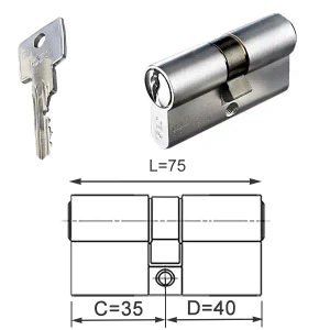 ISEO R6 EXTRA wkładka bębenkowa dwustronna (klucz/klucz) 35x40, niklowana matowa