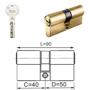 ISEO R6 EXTRA wkładka bębenkowa dwustronna (klucz/klucz) 40x50, mosiężna matowa