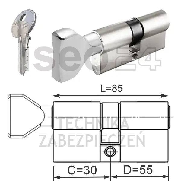 ISEO F5 wkładka bębenkowa dwustronna  (klucz/gałka) 30Gx55 gałka od 30, niklowana matowa